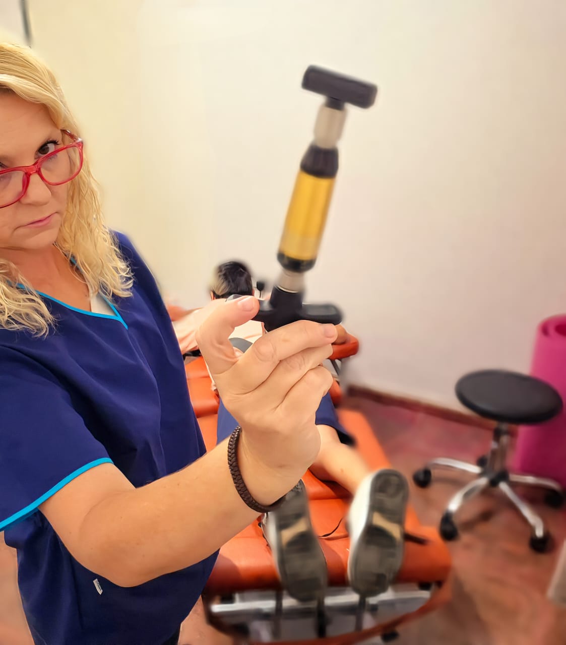En nuestro enfoque de quiropráctica desde la perspectiva osteopática funcional, iniciamos con un escáner termográfico para identificar las zonas de mayor alteración e interferencias. Con esta información, utilizamos dispositivos de bajo impacto, conocidos como interventores o activadores, para realizar ajustes articulares de manera precisa y segura. Además, para el programa de cuidado quiropráctico, empleamos una camilla específica con drops, que permite trabajar los segmentos articulares sin impacto brusco, protegiendo así las articulaciones del paciente y promoviendo una movilidad óptima en la columna vertebral y en las articulaciones periféricas.