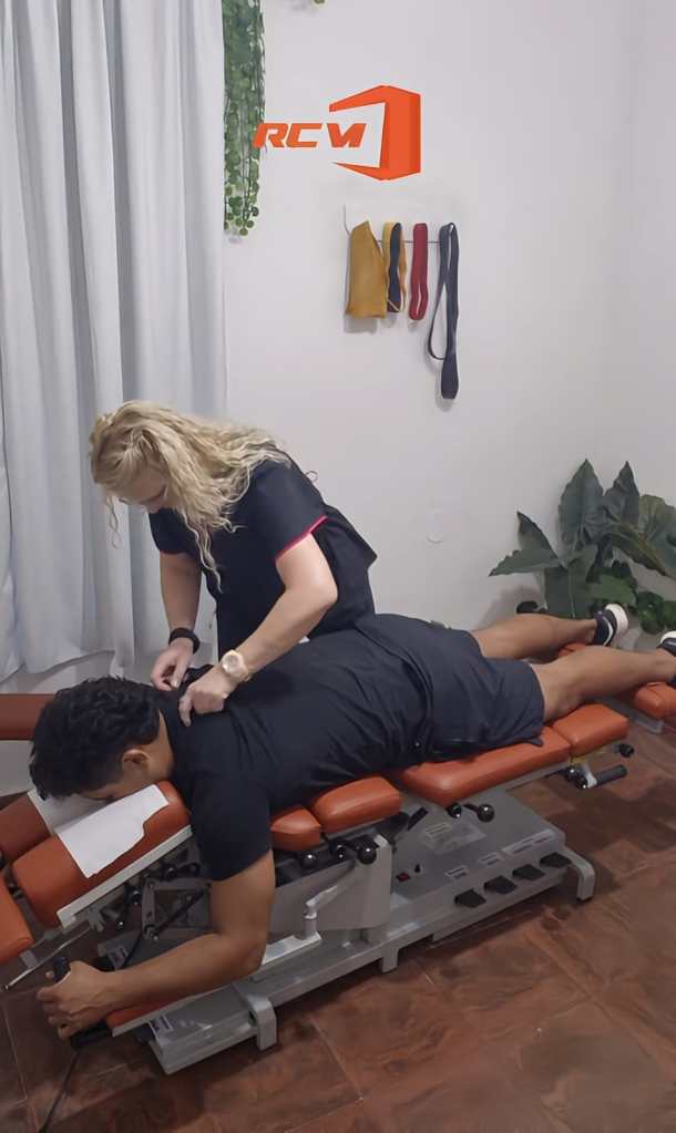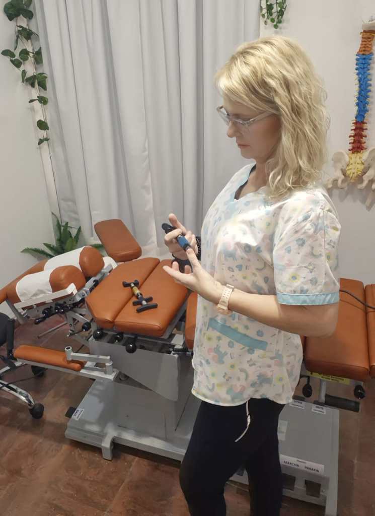Durante las sesiones se combina la terapia manual con el uso de dispositivos específicos de bajo impacto, como activadores e interventores quiroprácticos, junto con una camilla especializada que permite trabajar con movimientos controlados de tracción, flexión–distracción, lateralización y rotación.